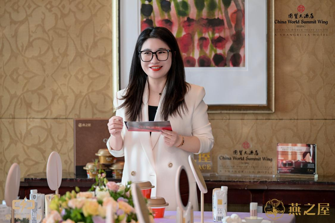 活動(dòng)伊始,燕之屋北京子公司總經(jīng)理徐可致辭道:“燕之屋與北京國貿(mào)大酒店聯(lián)名下午茶是燕之屋在首都北京的首次下午茶聯(lián)名合作。我們十分榮幸并且一定要把這份美與健康的生活理念傳遞給燕之屋重要的貴賓們。今年燕之屋還會(huì)在北京繼續(xù)探索“燕窩+咖啡”“燕窩私宴”,將燕窩更多地融入生活場(chǎng)景中,給各位貴賓帶來更好的服務(wù)體驗(yàn)。”隨后,北京國貿(mào)大酒店公關(guān)部總監(jiān)胡伊上臺(tái)致辭,詳細(xì)介紹了北京國貿(mào)大酒店文化底蘊(yùn)。北京國貿(mào)大酒店傲居紫禁之巔,始終致力于打造都市高雅生活方式,胡伊邀請(qǐng)大家一同置身甜蜜午后曼妙時(shí)光,悅享地標(biāo)性奢華體驗(yàn)。